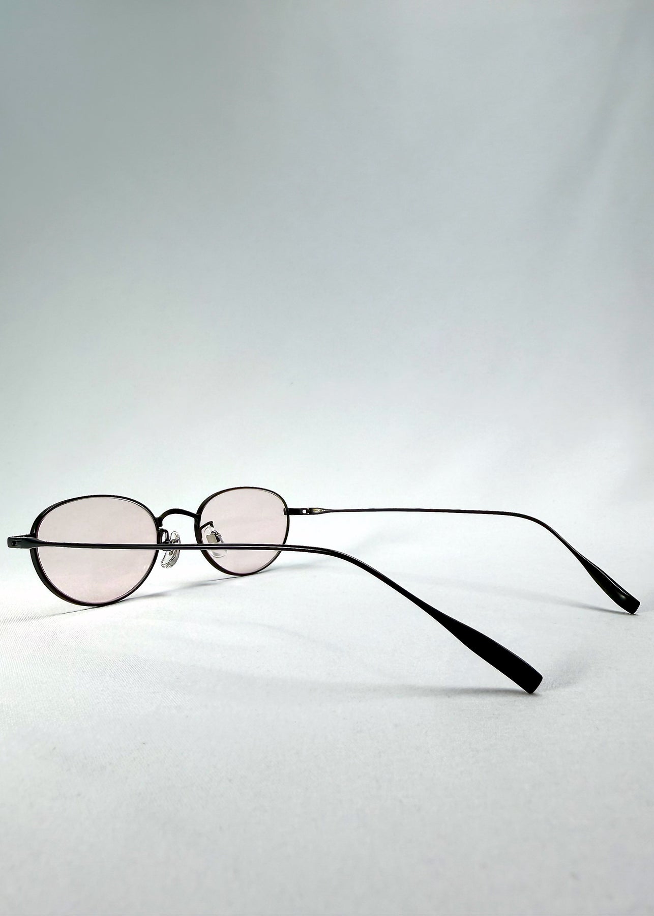 Titanium temples and adjustable silicone pads keep it effortlessly weightless, while the oval profile frames the face with clean intention.