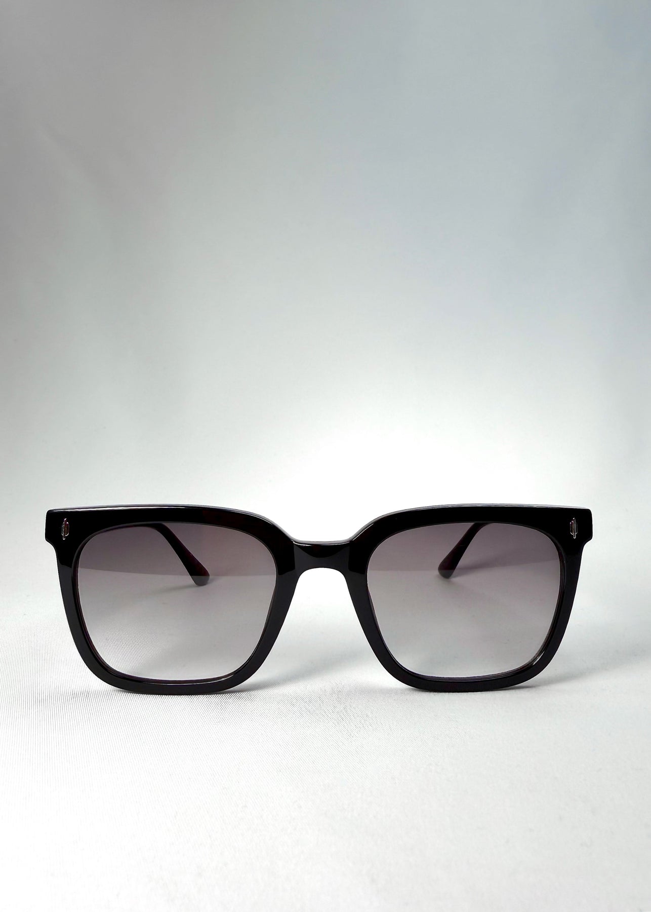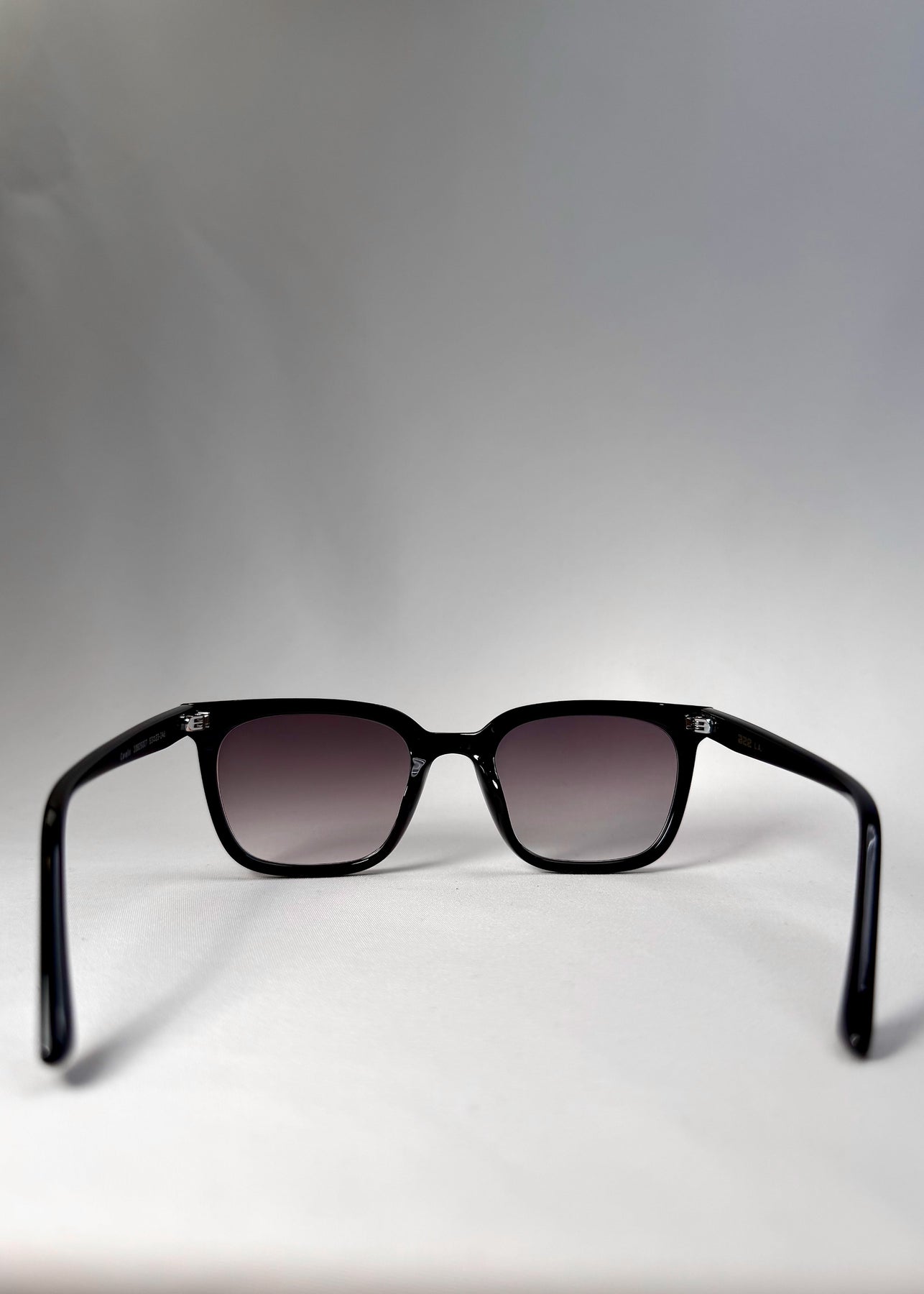 Cavalin in Graphite Haze is where bold angles meet understated cool. The glossy black acetate frame pairs with gradient smoke lenses to deliver edge without excess. A strong brow line and softened base bring instant balance to oval and round faces.