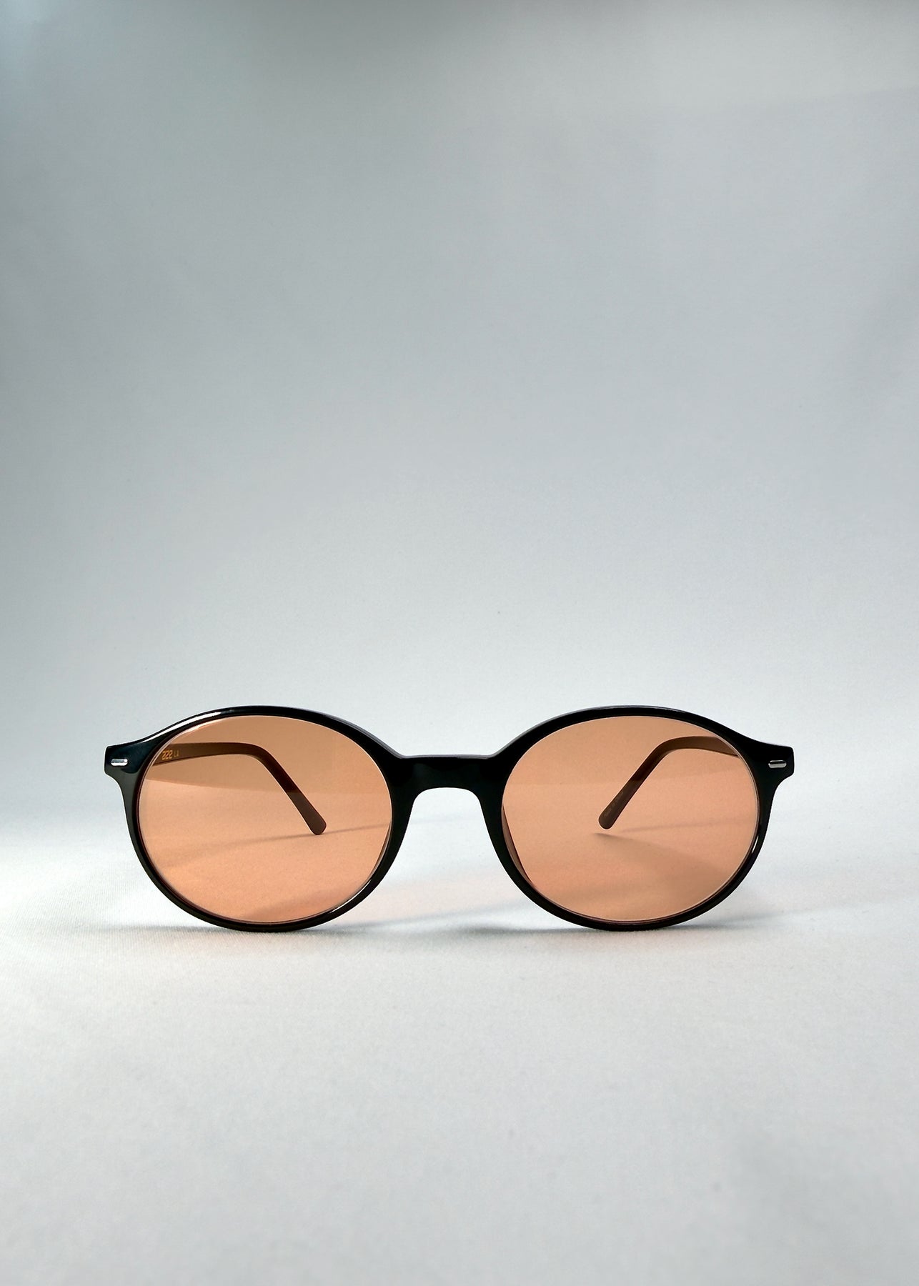 The deep black acetate frame pairs with softly amber-tinted Softint lenses that bring a calm warmth to its sharp silhouette.