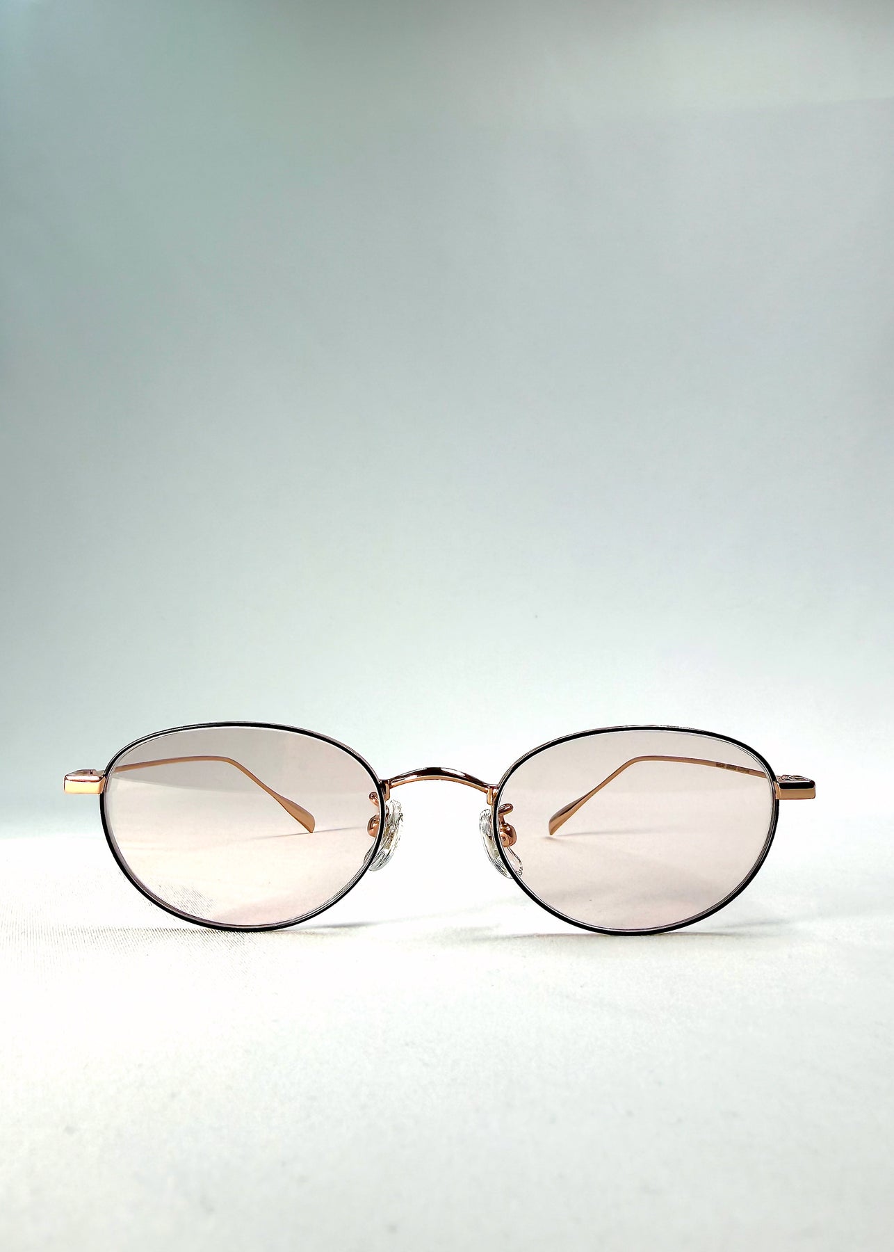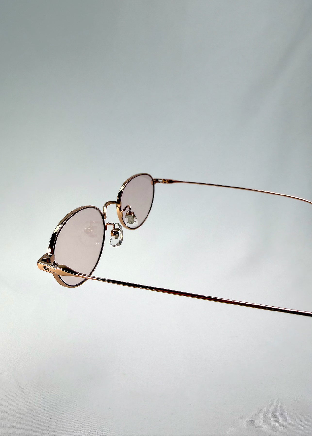 A satin-finished gold stainless-steel frame meets soft rose-beige Softint lenses with Blue Light and UV400 protection, diffusing light with quiet precision.